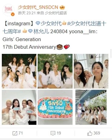 4日,允儿INS更新“Girls’ Generation 17th Debut Anniversary”,并上传了多张照片。
